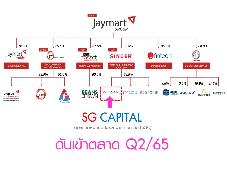 SINGER เผยปี 65 ตั้งเป้าดันพอร์ตสินเชื่อรวมแตะ 1.55 หมื่นล้านบาท จากสิ้นปีนี้ 1 หมื่นล้านบาท เผยได้เงินเพิ่มทุน 1.1 หมื่นล้านบาท ครบแล้ว เชื่อหนุนฐานทุนให้แข็งแกร่ง รองรับขยายธุรกิจใหม่ เผยบริษัทร่วมทุน GUNKUL เดินหน้าทำธุรกิจต้นปีหน้า หวังขยายฐานลูกค้าในมือ 1 แสนราย พร้อมดัน SGC เข้า SET คาด Q2-Q3/65 ตามแผน