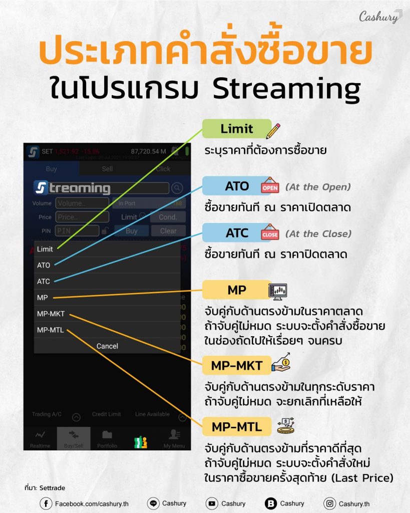 วันนี้เราเลยหยิบ “ประเภทคำสั่งซื้อขายในโปรแกรม Streaming” มาอธิบายว่า แต่ละคำสั่งคืออะไร แล้วใช้งานอย่างไรบ้าง
